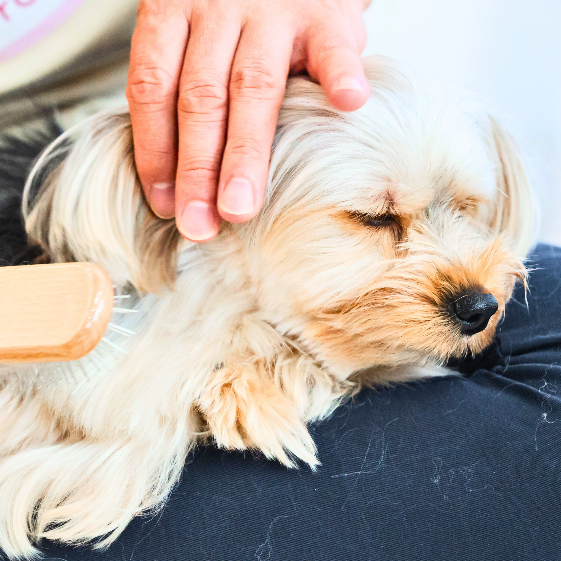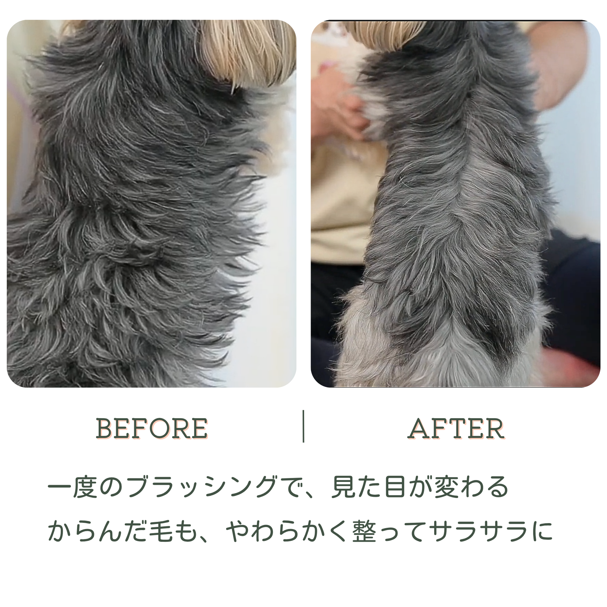 - 毛流れに沿って、ゆっくりとやさしくブラッシング。